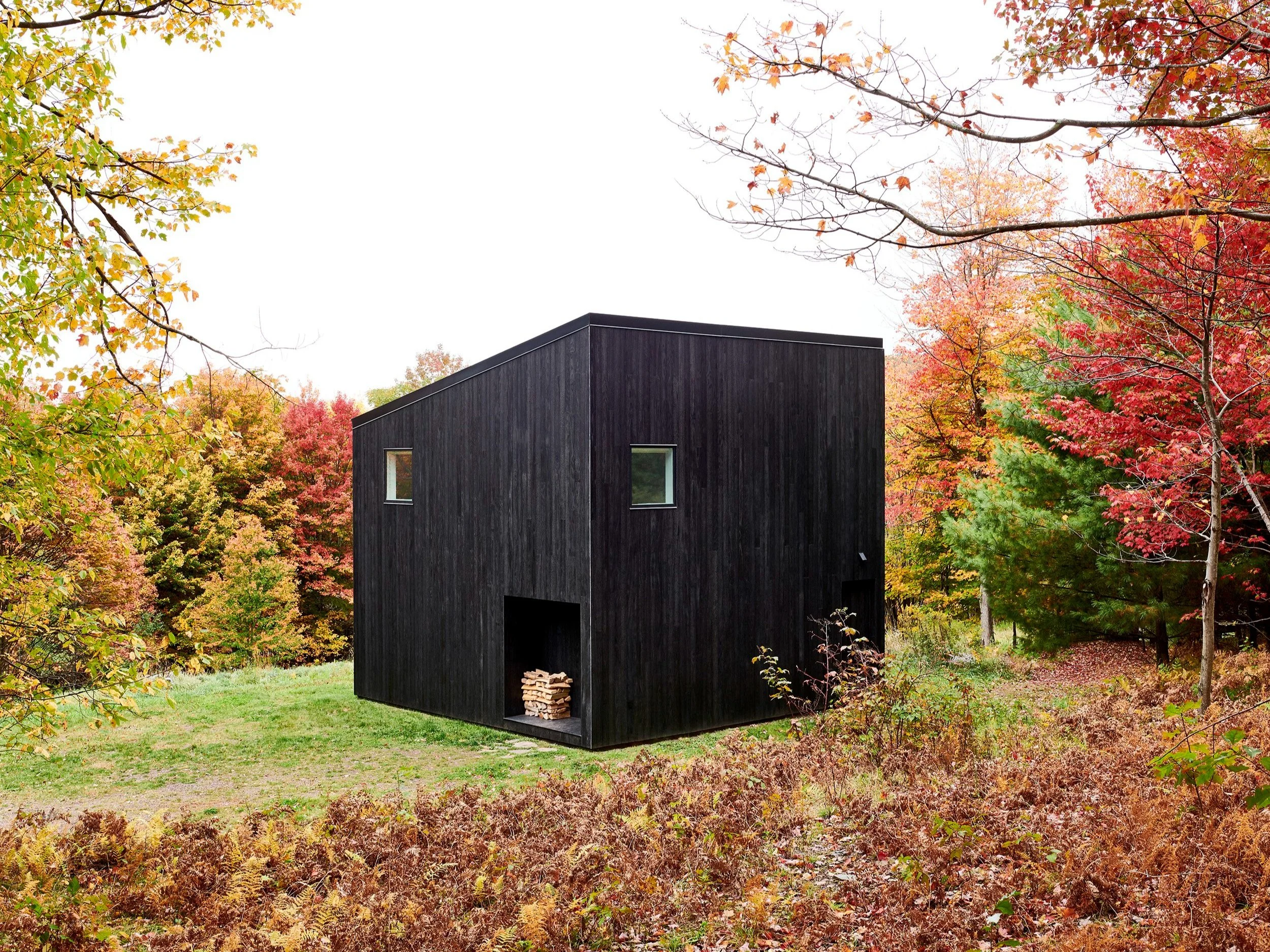 House in Bovina 1 is a 2-story, contemporary shed-style structure located in the Catskills Mountain region of New York state. At less than 1000 square feet the project was designed to maximize the footprint of an existing slab found on the site while providing a flexible living and remote working space for the owners and their frequent guests.